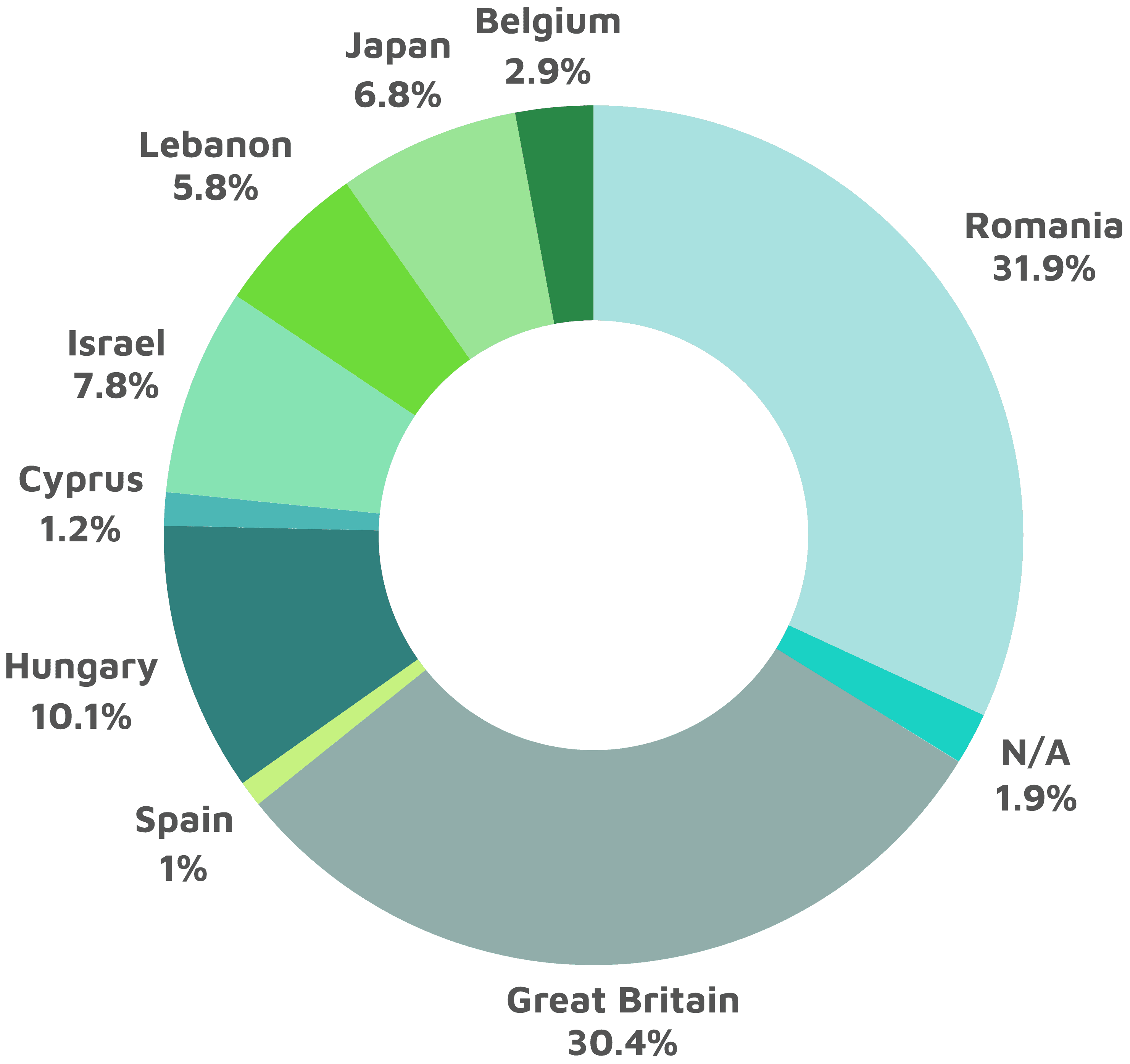 The second place in the ranking of investor nationalities is held by the United Kingdom, with total transactions of EUR 156 million. All these acquisitions were made by M Core, which purchased seven retail parks located in medium-sized Romanian cities, as well as the Focșani Mall shopping center.