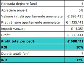 În plus, aprecierea valorii apartamentelor pe parcursul celor 5 ani contribuie semnificativ la randamentul total al investiției, făcând această strategie extrem de atractivă pentru investitori.