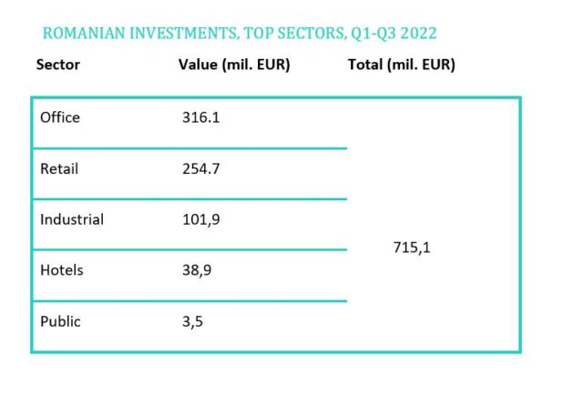 În trimestrul trei 2022, s-au tranzacționat clădirile de birouri One Victoriei Plaza, Cascade Office, 75% din MIRO și Floreasca Lake Office Building.