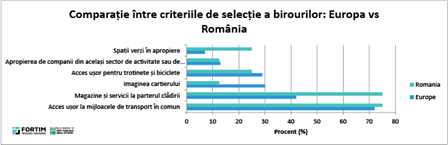 Criteriul de pe locul trei este diferit în restul Europei, la nivel pan-european importantă fiind imaginea ce o conferă o clădire de birouri, în timp ce în România, la egalitate pe locul trei mai importante sunt existența unor spații verzi și accesul cu bicicleta.