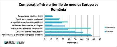 În România, managementul deșeurilor a întrunit atenția tot a atâtor respondenți, 75%, pe locul următor fiind grija pentru folosirea resurselor (50%), urmată de adaptabilitatea și reziliența clădirii, posibilitatea de a fi reconvertite spațiile de birouri (37%).