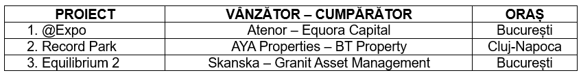 Aceste tranzacții evidențiază interesul pentru active situate atât în București, cât și pentru marile centre regionale, precum Cluj-Napoca, în ciuda contextului mai rezervat al pieței.